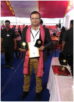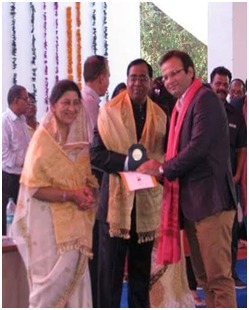 Dr Girish Motwani receiving 2 Gold medals awards by university chancellor, M.S university Baroda in 2015 for standing first rank in final master of orthopedic examination.