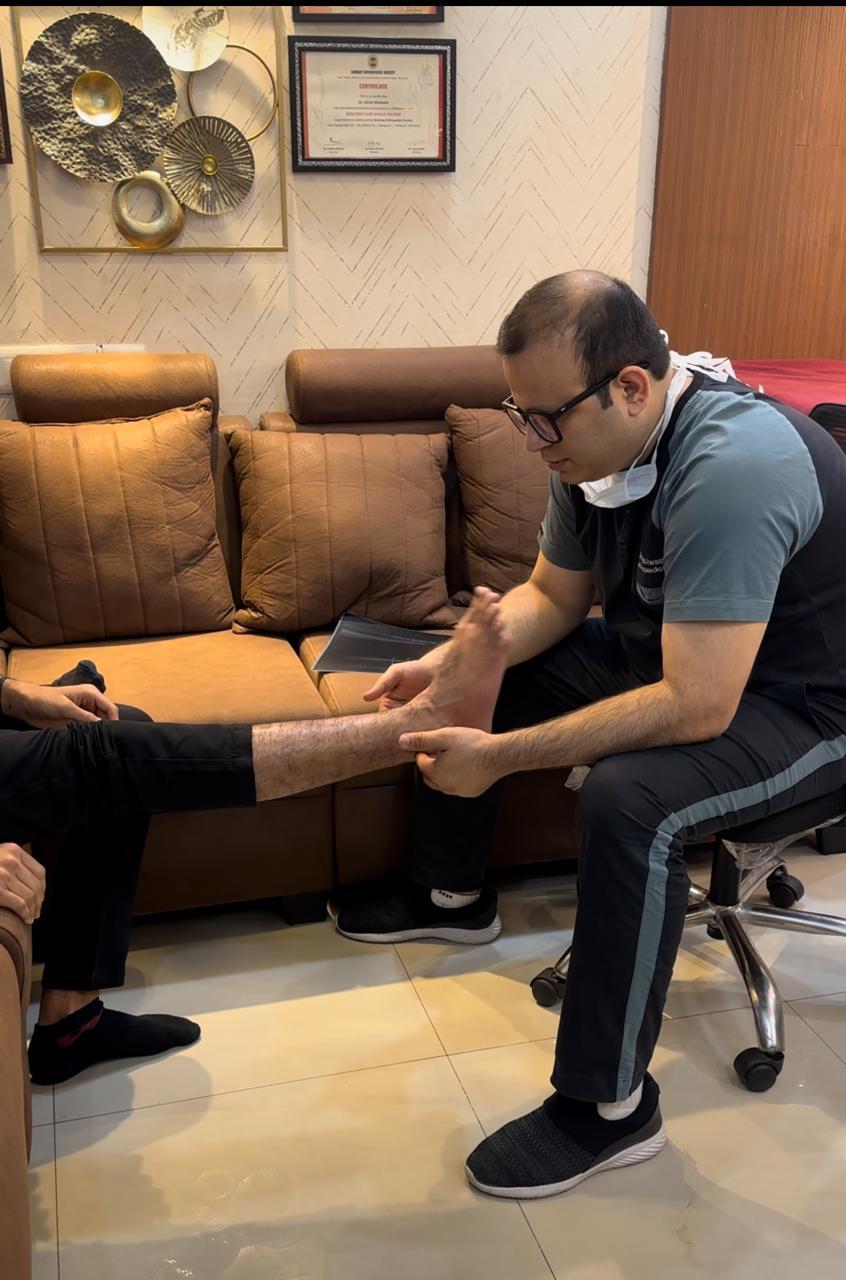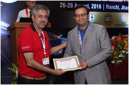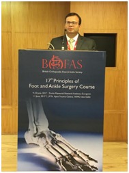 Dr.Girish motwani receiving IFAS Foot and ankle orthopedic fellowship certificate by IOA president Dr Mandeep Dhillon